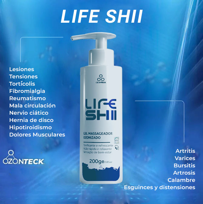 LIFE-SHII es un gel ozonizado, perfecto para momentos de relax y dolor , ya que además de proporcionar una deliciosa sensación de bienestar , también ayuda a relajar los músculos , perfecto para quienes necesitan recuperarse después de un día estresante.